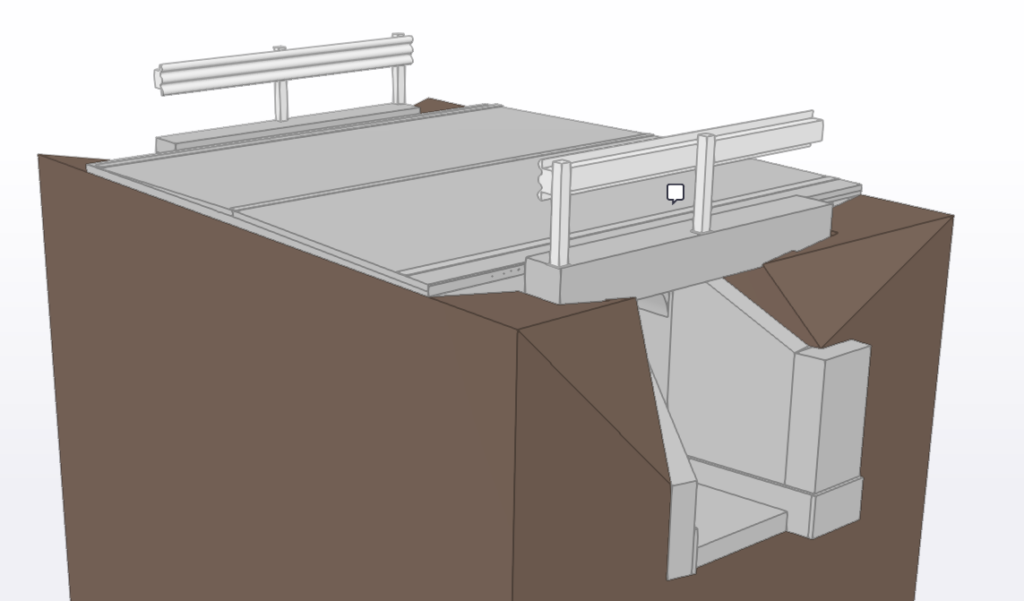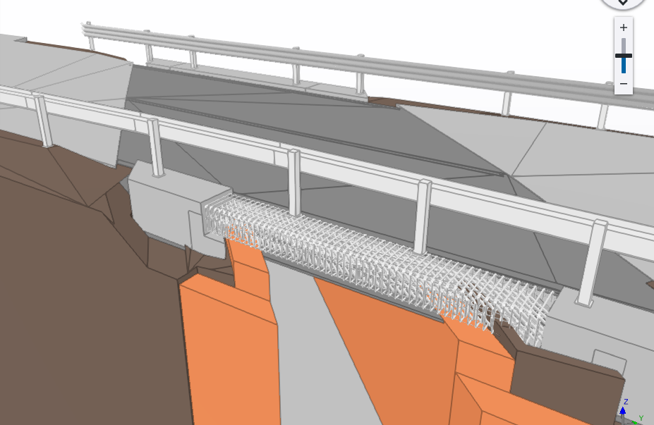 Un aspetto distintivo è la modellazione dettagliata dei ferri d’armatura nelle parti di nuova costruzione, come muri di contenimento e plinti, con LOG D  e LOI F, evitando ridondanze per mantenere i file leggeri. Questo livello di dettaglio permette estrazioni dirette di piante, sezioni, nodi e computi metrici, integrando parametri WBS per tracciare lavorazioni e costi. I modelli sono esportati in IFC 4.3 openBIM, compatibili con standard UNI 11337 e ISO 19650, per una federazione multidisciplinare che include anche impianti MEP.